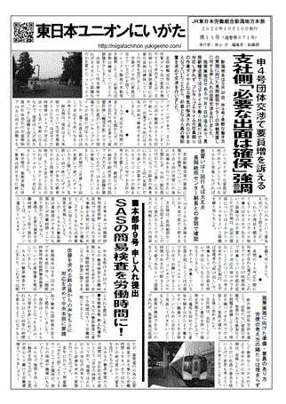 【団交日程決定】2025年10月21日 申3号 2025年度冬期に関する申し入れの団体交渉を行います 【団体交渉終了】2025年 9月30日 申4号 「柔軟な働き方に向けた長岡統括センターの体制見直しについて」に対する申し入れの団体交渉を行いました 【団体交渉終了】2025年 9月30日 申16号 2025年3月ダイヤ改正検証に関する申し入れの団体交渉を行いました 【団体交渉終了】2025年 9月30日 申15号 キハ110系及びGV-E400系におけるワンマン設定に関する申し入れの団体交渉を行いました 【団体交渉終了】2025年 9月25日 申2号 社員に責任を負わせるプレス発表に対する緊急申し入れの団体交渉を行いました 【申し入れ提出】2025年 9月22日 申4号 「柔軟な働き方に向けた長岡統括センターの体制見直しについて」に対する申し入れを提出しました |