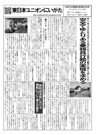 ★ 2026年 1月26日 「地本情報紙コーナー」に、情報紙「unify」第31号を掲載しました ★ 2026年 1月26日 「学習・資料コーナー」に、最近の話題コーナーの記事を掲載しました ★ 2026年 1月25日 「地本情報紙コーナー」に、機関紙「東日本ユニオンにいがた」第31号を掲載しました ★ 2026年 1月25日 「地本団体交渉コーナー」に、申11号・団交日程決定を掲載しました ★ 2026年 1月24日 「地本情報紙コーナー」に、情報紙「unify」第30号を掲載しました ★ 2026年 1月24日 「賃金引き上げのたたかい2026コーナー」に「情勢を知ろうのコーナー」の記事を掲載しました ★ 2026年 1月23日 「地本情報紙コーナー」に、情報紙「unify」第29号を掲載しました ★ 2026年 1月23日 「学習・資料コーナー」に、最近の話題コーナーの記事を掲載しました ★ 2026年 1月22日 「組合員へのお知らせコーナー」に「支社提案・新たな組織と働き方についてに対する取り組み」を掲載しました ★ 2026年 1月21日 「地本情報紙コーナー」に、情報紙「unify」第28号を掲載しました ★ 2026年 1月21日 「地本団体交渉コーナー」に、申9号・支社側の回答及び見解を掲載しました ★ 2026年 1月20日 「地本情報紙コーナー」に、機関紙「東日本ユニオンにいがた」第30号を掲載しました ★ 2026年 1月20日 「賃金引き上げのたたかい2026コーナー」に「昨年のふりかえりコーナー」の記事を掲載しました ★ 2026年 1月19日 「地本団体交渉コーナー」に、申9号・団体交渉終了を掲載しました ★ 2026年 1月19日 「学習・資料コーナー」に、最近の話題コーナーの記事を掲載しました ★ 2026年 1月18日 「地本団体交渉コーナー」に、申11号・申入れ提出を掲載しました ★ 2026年 1月17日 「地本情報紙コーナー」に、情報紙「unify」第27号を掲載しました ★ 2026年 1月17日 「賃金引き上げのたたかい2026コーナー」に「情勢を知ろうのコーナー」の記事を掲載しました ★ 2026年 1月16日 「地本情報紙コーナー」に、情報紙「unify」第26号を掲載しました ★ 2026年 1月16日 「学習・資料コーナー」に、最近の話題コーナーの記事を掲載しました ★ 2026年 1月15日 「地本団体交渉コーナー」に、申9号・団交日程決定を掲載しました ★ 2026年 1月15日 「地本情報紙コーナー」に、機関紙「東日本ユニオンにいがた」第29号・情報紙「unify」第25号を掲載しました ★ 2026年 1月14日 「地本団体交渉コーナー」に、申10号・申入れ提出を掲載しました ★ 2026年 1月14日 「組合員へのお知らせコーナー」に「第13回中央委員会」を掲載しました ★ 2026年 1月13日 「地本情報紙コーナー」に、情報紙「unify」第23・24号を掲載しました ★ 2026年 1月13日 「賃金引き上げのたたかい2026コーナー」に「学習コーナー」の記事を掲載しました |