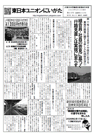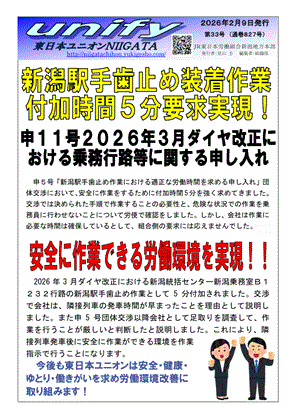 ■ 機関紙 「東日本ユニオンにいがた」 最新号 (PDF形式でご覧いただけます) |