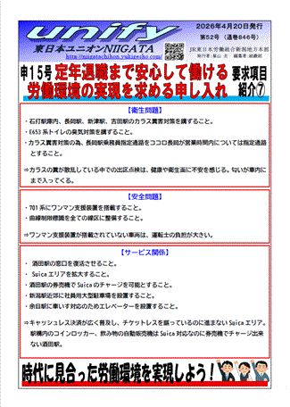 申5号 新潟駅手歯止め作業における適正な労働時間を求める申し入れ